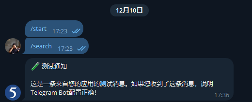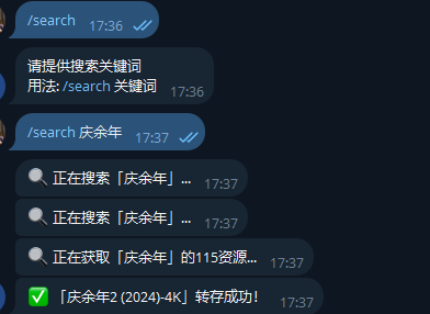 发送 /search 关键词 开始搜索 如下图