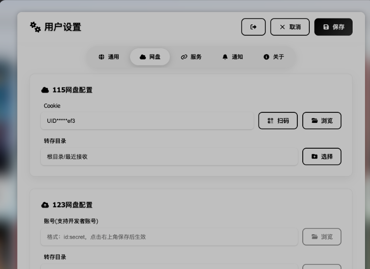 获取网盘cookie,设置转存目录