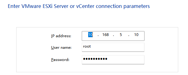 输入esxi的地址和账号密码