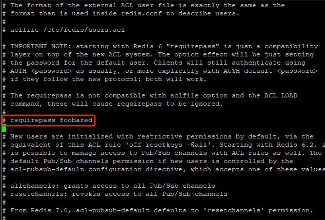 找到 # requirepass foobared 这行(如上图)