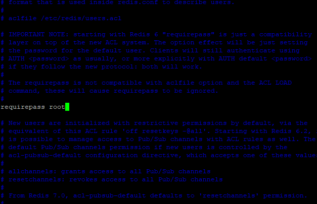 把前面的#号去掉,将 foobared 改成你想要设置的密码,我这里将密码设置成 root(修改后如下图),修改后保存