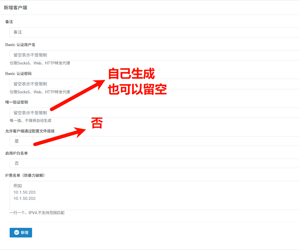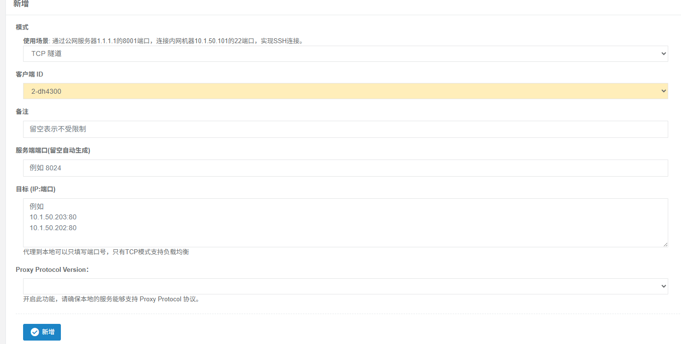 进入隧道管理:NPS 后台 -> “TCP 隧道” -> “新增”。